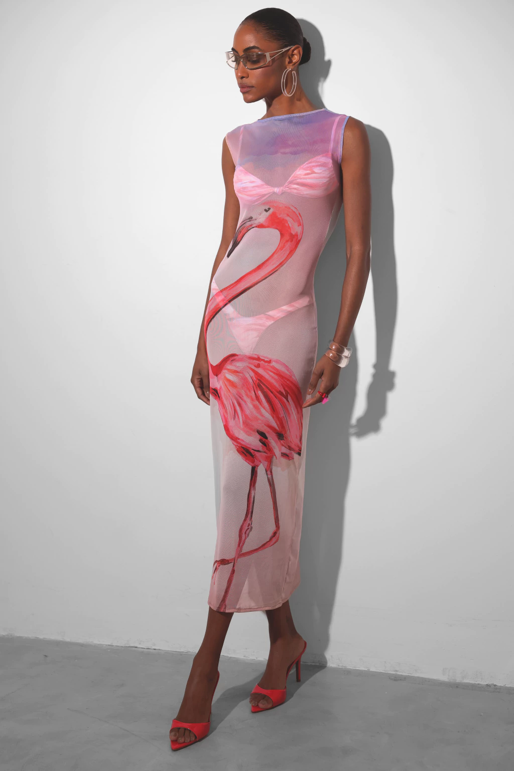 Estilosa, versátil e com caimento leve, essa saída de praia é um verdadeiro destaque para os dias de sol. Confeccionada em tule transparente, ela traz uma estampa vibrante de flamingo que confere um visual impactante e fashionista.